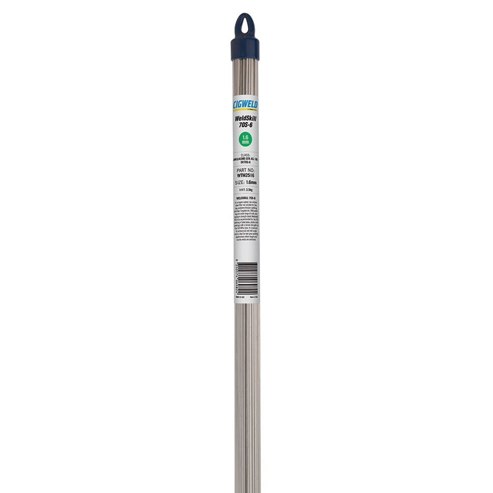 Weldskill 70S-6 is a copper coated, low carbon steel filler rod suitable for the oxy-acetylene (fusion) welding and Gas Tungsten Arc (TIG) welding of a wide range of mild and medium strength steels. Weldskill 70S-6 is recommended for the TIG welding of steel pipes, plates and castings with a tensile strength in the 500 MPa class. It is tolerant to surface rust and mill scale and is ideal for root pass welding applications where tough and ductile welds are produced.