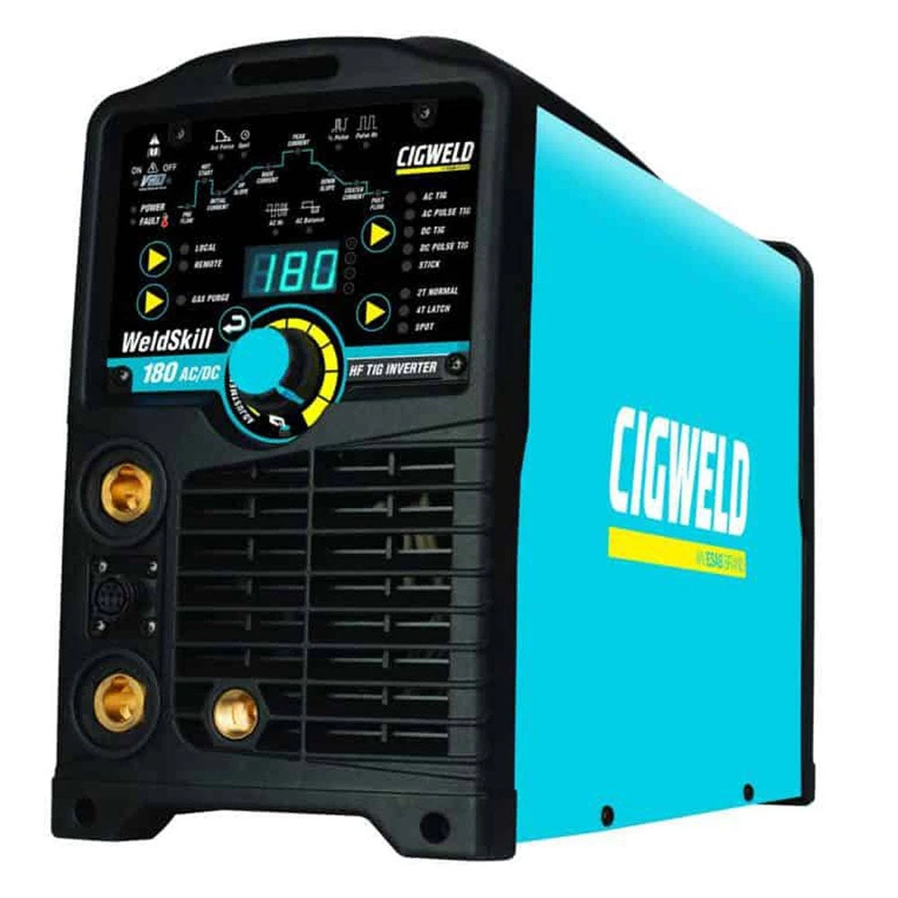 The CIGWELD WeldSkill 180 AC/DC is a compact and lightweight 12kg TIG Inverter that has the added flexibility and portability of a 10 Amp plug to manoeuvre easily around your workshop.