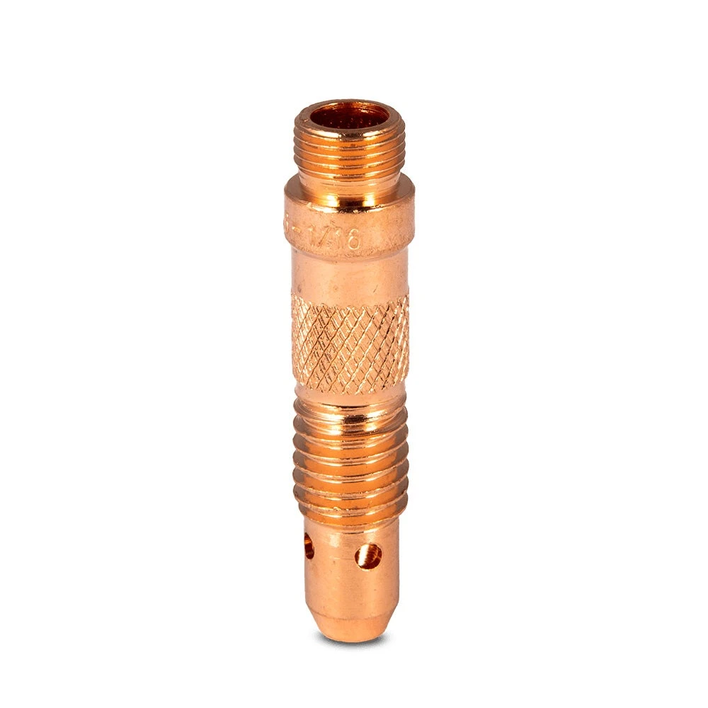 UNIMIG TIG Torch Collet Bodies are made from high-grade tellurium copper giving the collet body longer consumable life under extreme heat, they also hold your tungsten electrode securely even after extended periods of time.