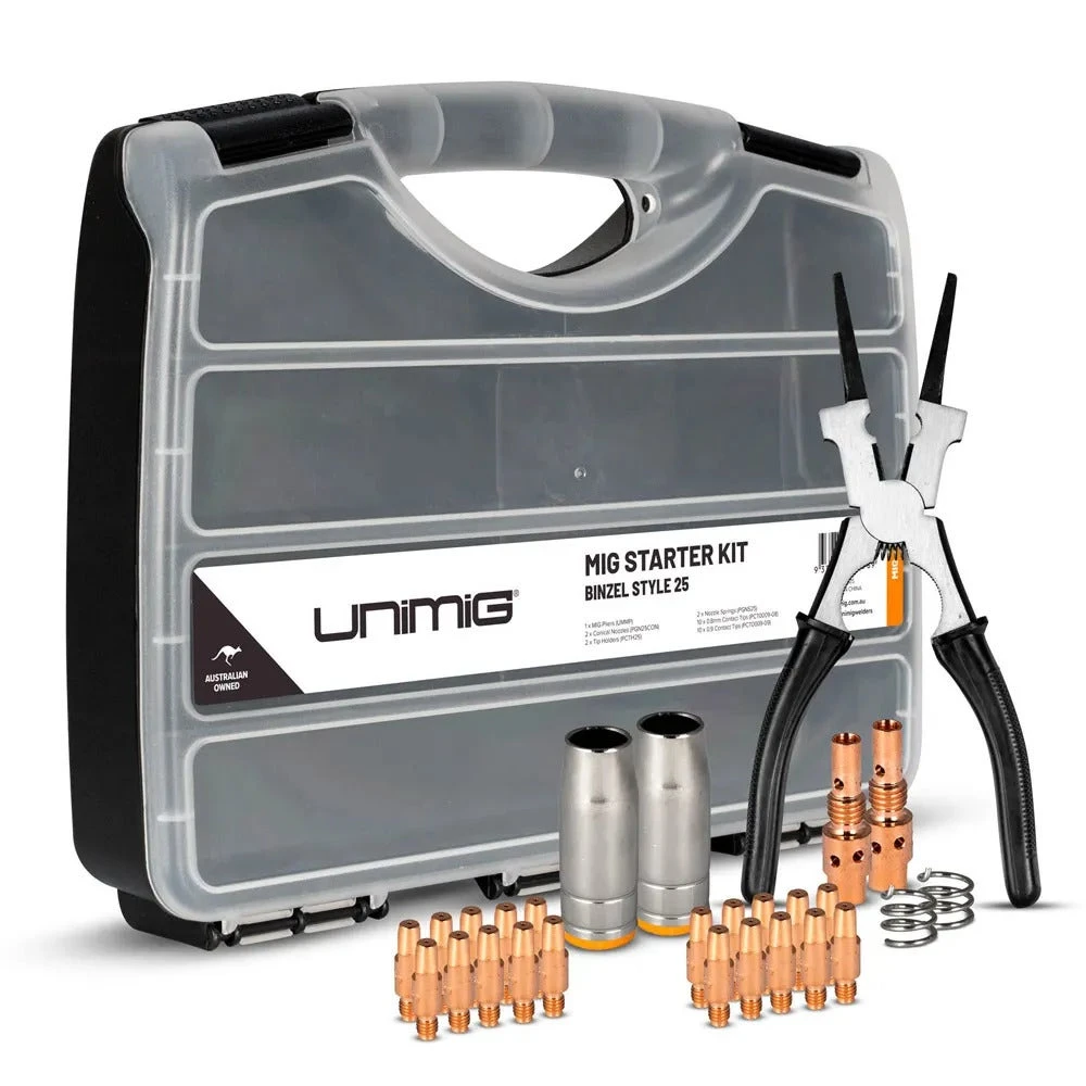 Packaged in a sturdy carry case, consumable starter kits are now available to from UNIMIG. This kit is the perfect companion to be bundled alongside machines, which the kit containing all the essential consumables for a MB25 Style MIG Torch.
